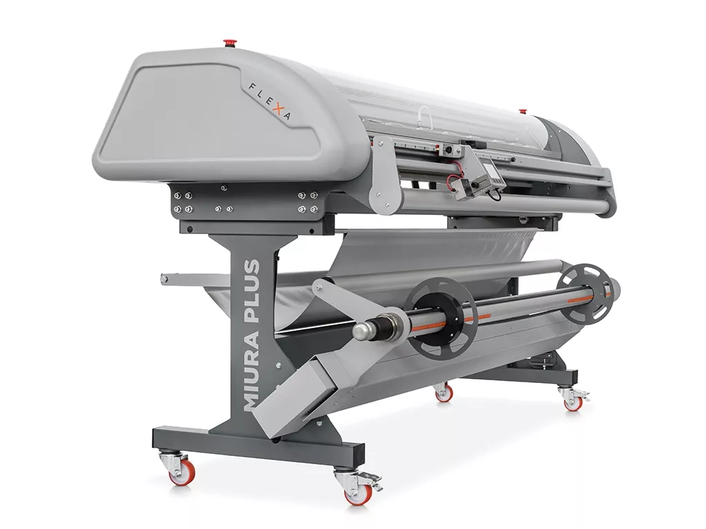 Miura Plus cuts one roll of 50 meters (164 ft) in less than 5 minutes