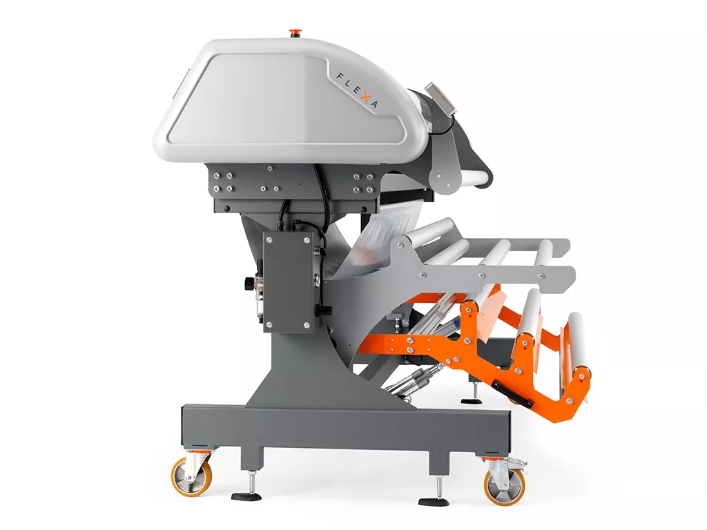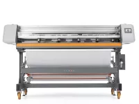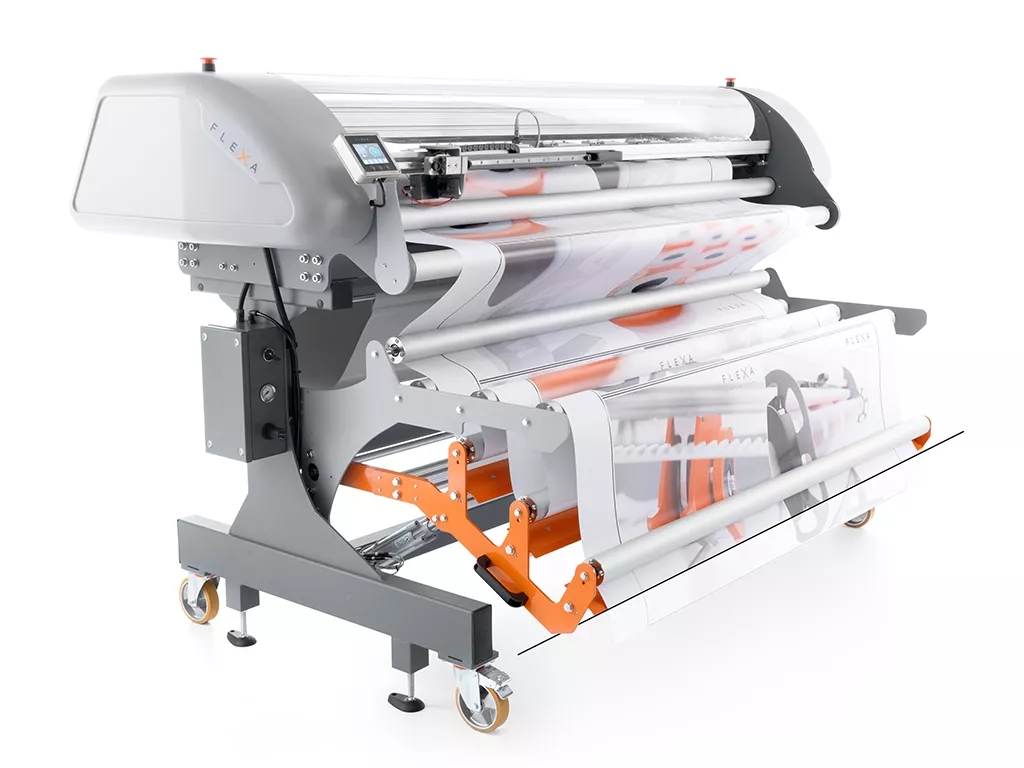 Taglierina XY altamente performante per il taglio orizzontale e verticale di materiali flessibili con allineamento verticale automatico. Equipaggiata con un ballerino per il taglio in linea con le stampanti di grande formato.