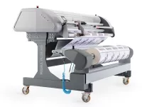 Taglierina altamente performante per il taglio orizzontale e verticale di materiali flessibili con allineamento verticale automatico. Adatta per grosse produzioni.
