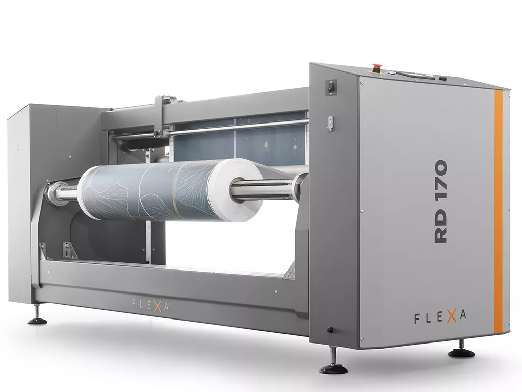 Il riavvolgitore RD 170 può essere utilizzato in linea con Canon Colorado o altra una stampante, integrandosi al processo di finitura.