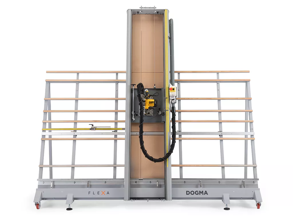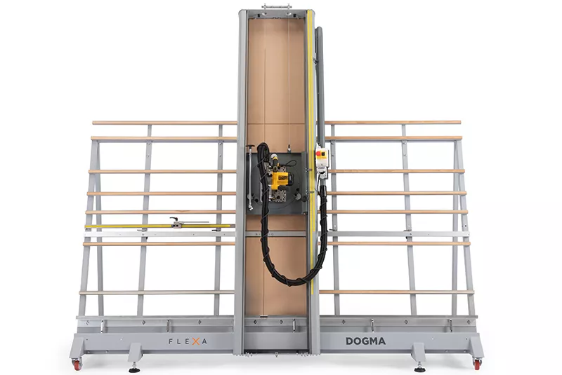 Flexa, sempre al passo con le richieste del mercato, ha progettato e creato DOGMA, una sezionatrice verticale per pannelli fino a 2,1 m di altezza e senza limiti di lunghezza. Con il gruppo di taglio orientabile sia in verticale che in orizzontale, tagliare PVC, legno, alluminio, policarbonato e altri materiali diventa un'operazione sicura e di massima precisione.
