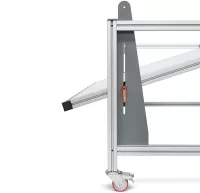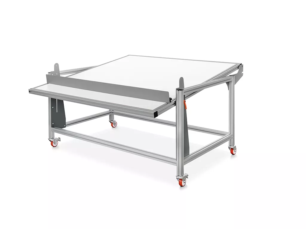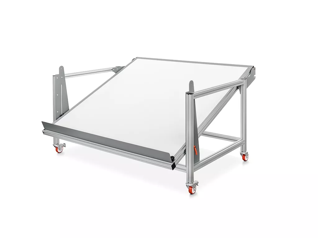 Tavolo di raccolta stampe inclinabile con ruote. Adatto per tutti i modelli delle taglierine automatiche Miura 160.