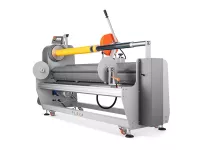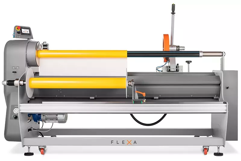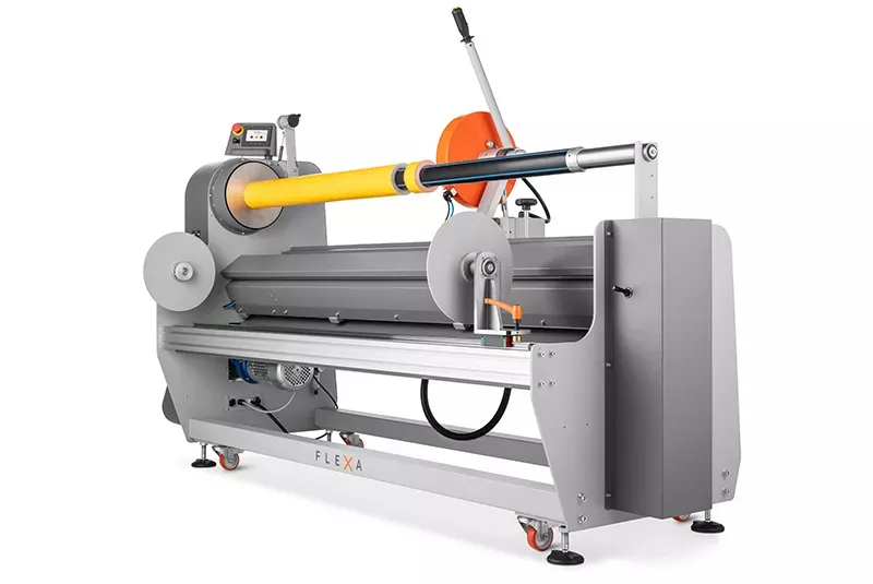 Tagliarotoli professionale heavy-duty per converter. Permette di tagliare e riavvolgere rotoli di diversi materiali in modo estremamente semplice e preciso.