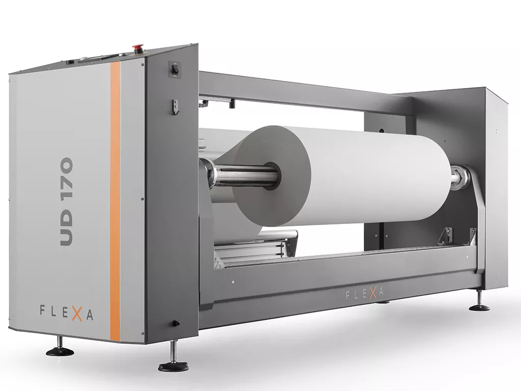 L'UD 170 è uno svolgitore motorizzato progettato per lavorare con bobine jumbo di diametro fino a 600 mm e 400 kg di peso.